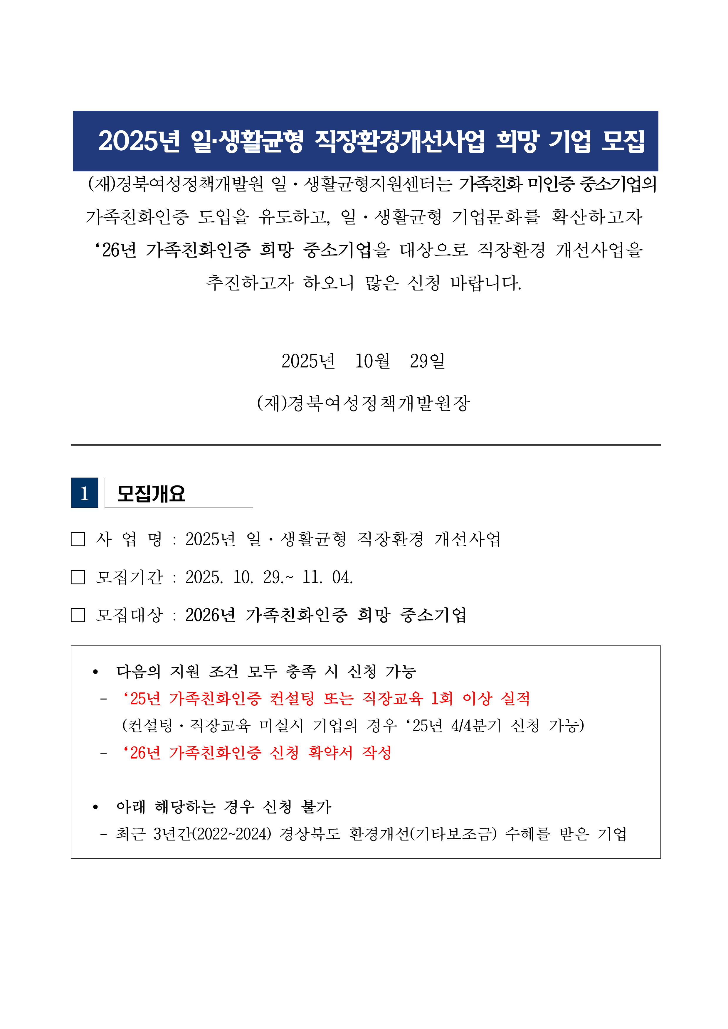 2025년 일·생활균형 직장환경개선사업(3차) 참여기업 모집 공고(안).hwp (57.0KB byte)