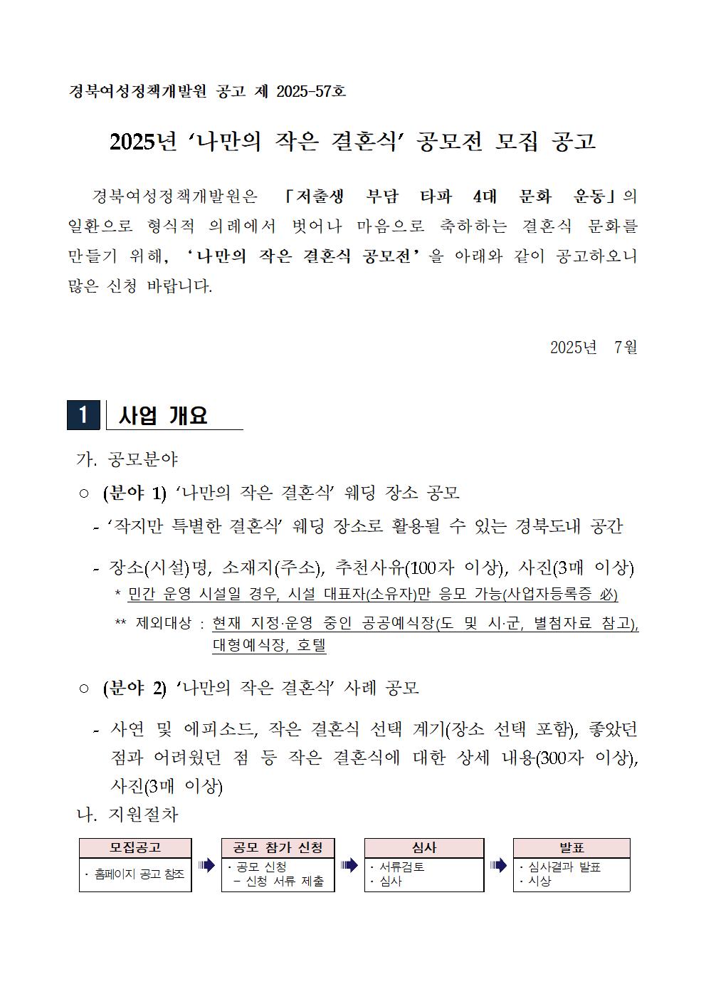 1.(공고문)2025년 ‘나만의 작은 결혼식’ 공모전 모집 공고.pdf (297.1KB byte)