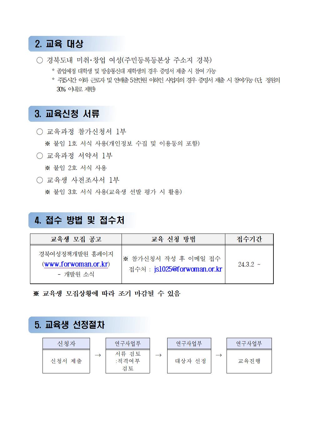 경북여성 창업 활성화 기반 구축 및 사후관리